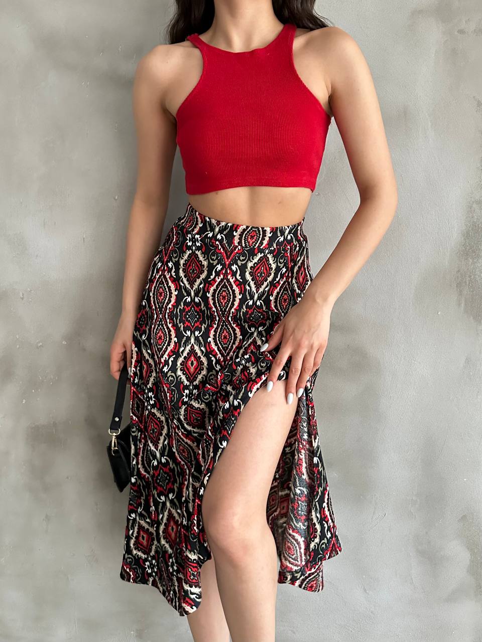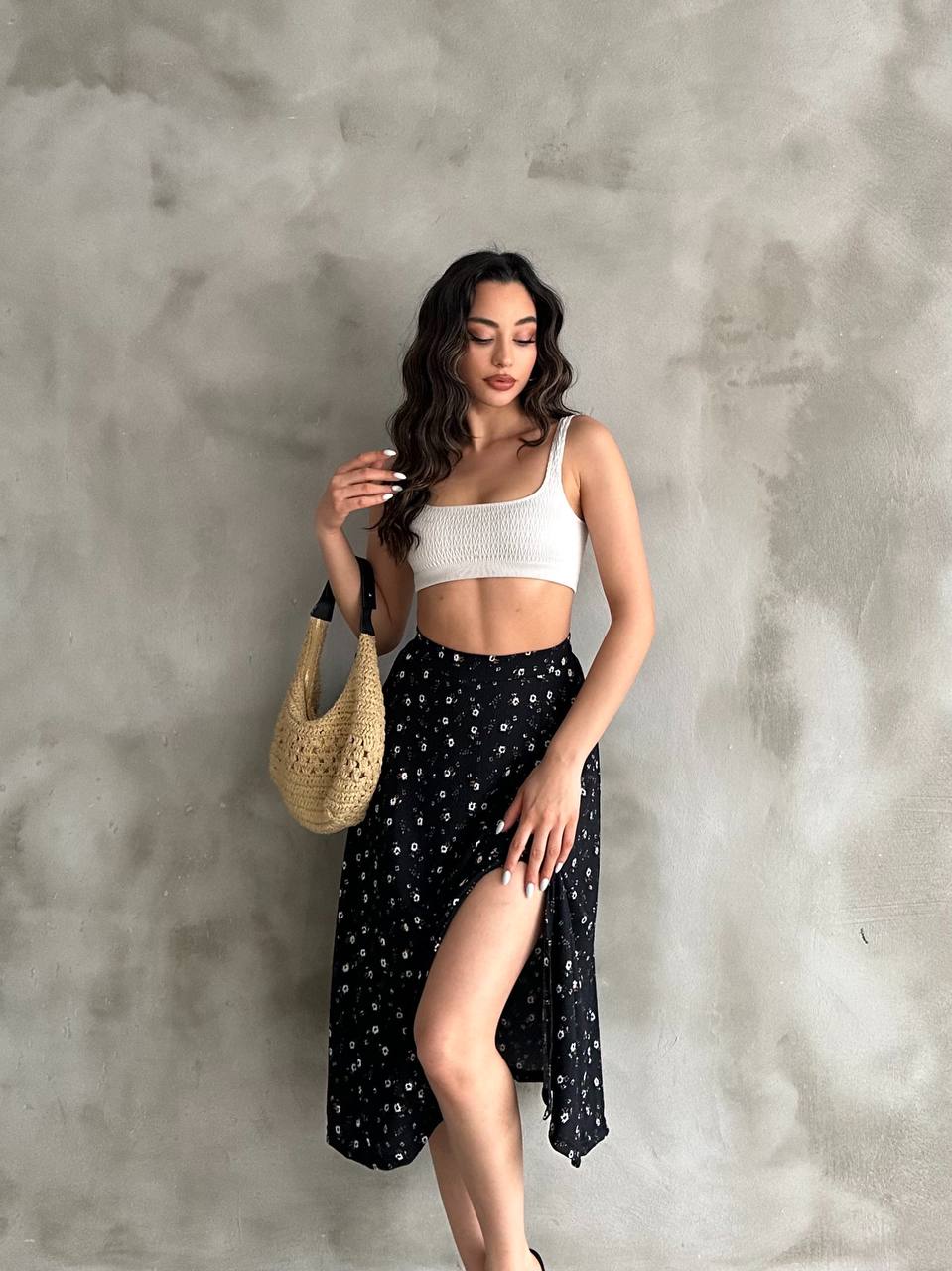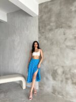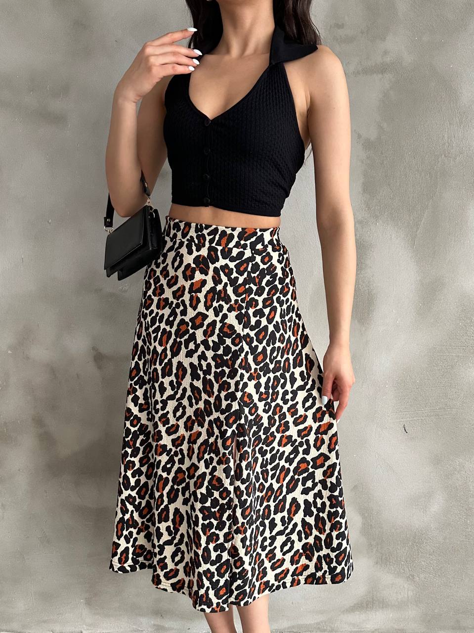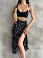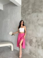 This piece, which has a wide range of uses from casual to vacation styles, can be easily combined with simple tops. It is a must-have in your closet for a feminine and confident stance!